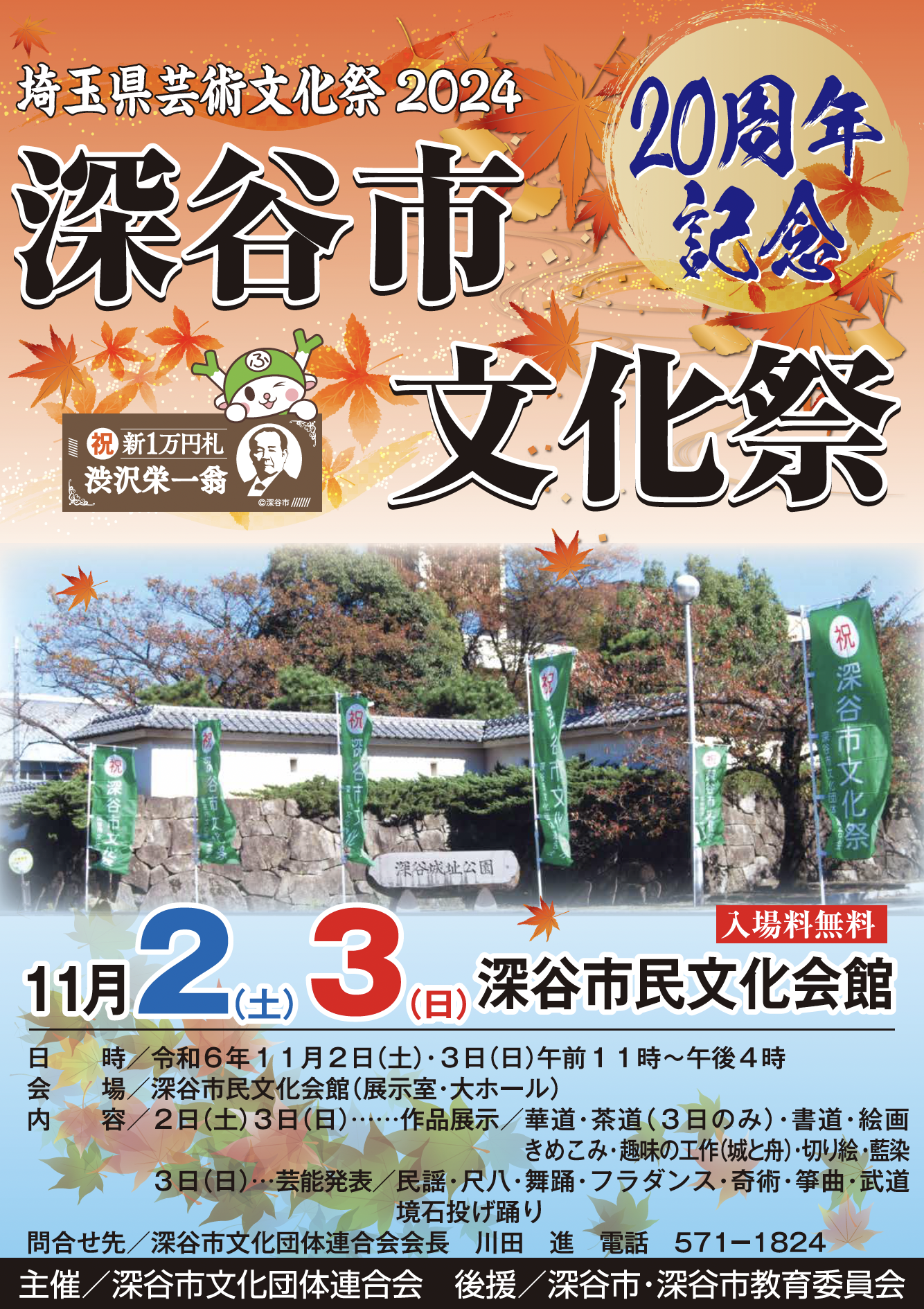 20周年記念深谷市文化祭にて演奏いたします。 11月3日(日)に『20周年記念深谷市文化祭』にて演奏いたします。皆様のお越しをお待ちしています♪5番衛藤公雄 作曲 「薫る花」 10番唯是震一 作曲 「箏二重奏曲 第二番」 投稿日:2024.10.22